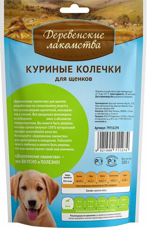 Лакомство Деревенские лакомства "Куриные колечки" для щенков 79711274