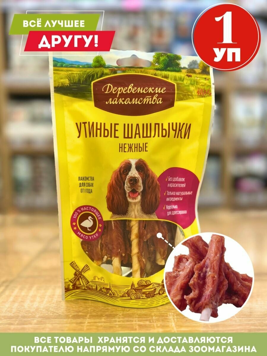 Деревенские лакомства для собак Утиные шашлычки нежные 90г