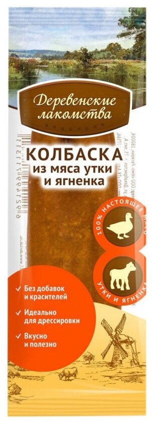 Деревенские лакомства Мини колбаска для собак из мяса утки и ягненка, 8г 0.008 кг