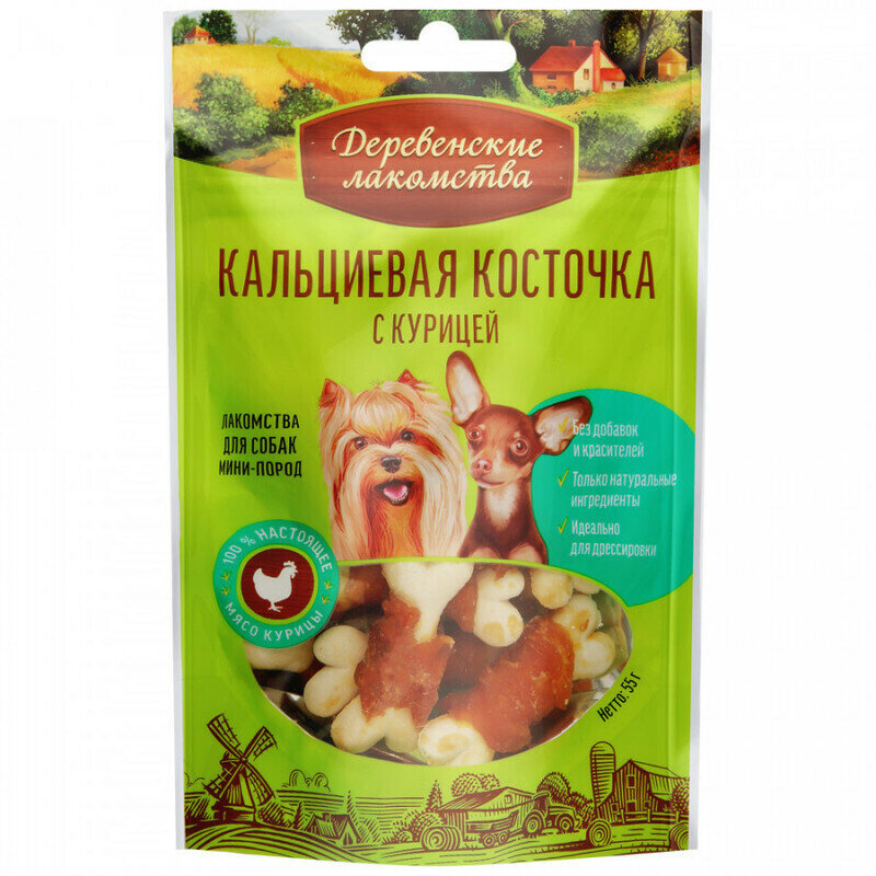 Деревенские лакомства "Кальциевая косточка с курицей" для мини пород пакет, 55 гр