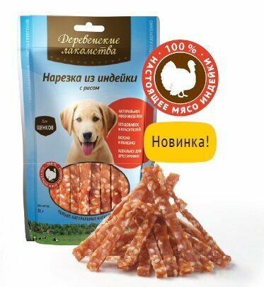 Деревенские лакомства 0,085кг нарезка из индейки с рисом для щенков