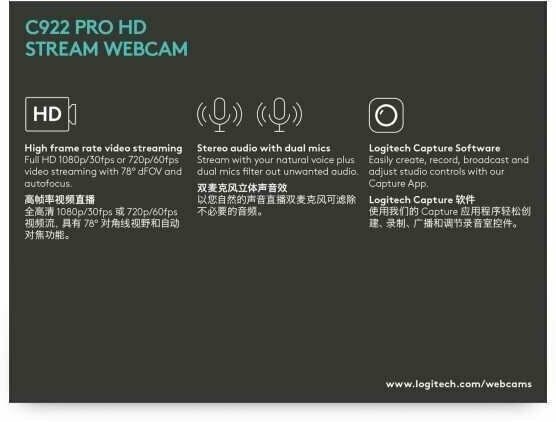 Веб-камера Logitech C922 Pro Stream, черный интересное: