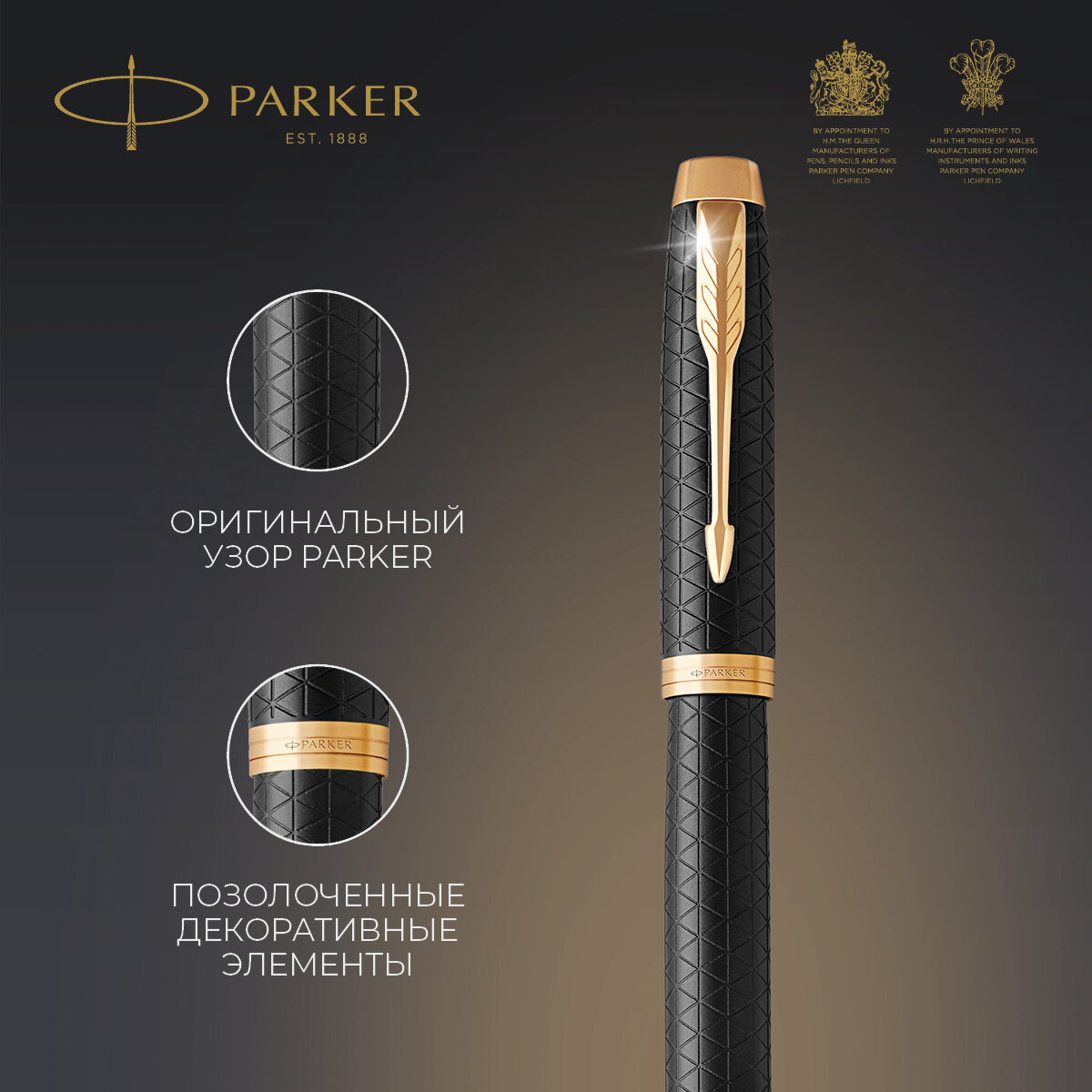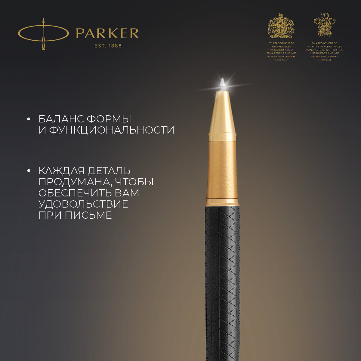 Ручка-роллер PARKER "IM Premium Black GT", корпус черный матовый с гравировкой, позолоченные детали, черная, 1931660