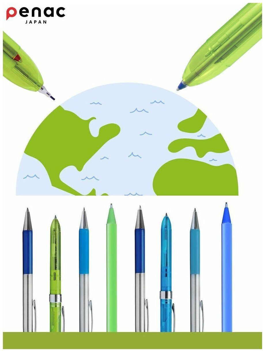 Ручка многофункциональная PENAC ELE-001: 2 стержня синего и красного цветов 0,35мм +Карандаш механический 0,5мм НВ, ластик, цвет корпуса: светло-зеленый, в прозрачном пластиковом футляре