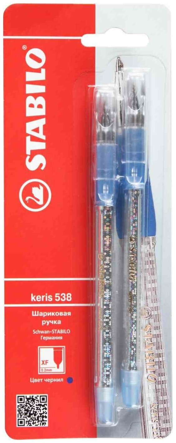 Ручка шариковая STABILO keris 538, 2 шт/уп, цвет чернил синий интересное: