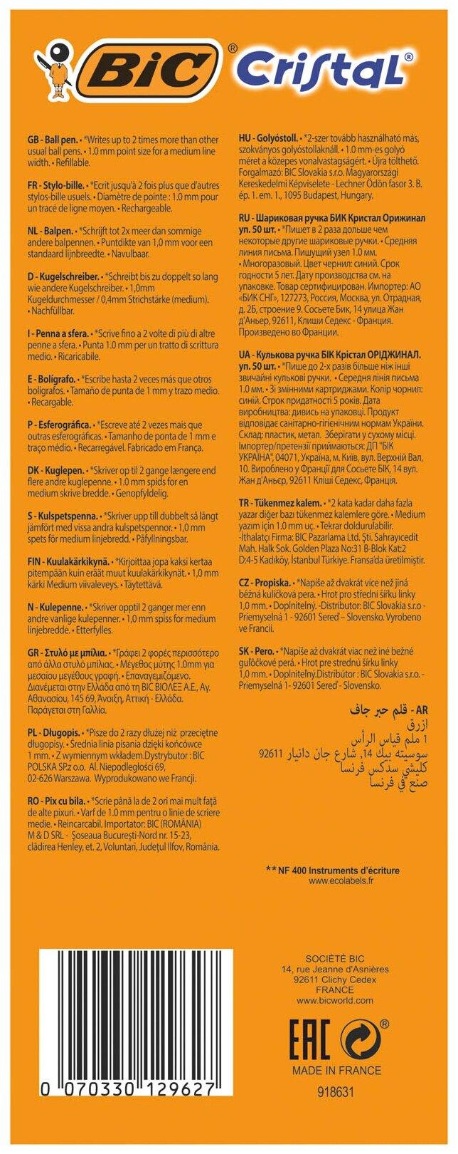 BIC Набор шариковых ручек Cristal Original, 1 мм, 50 шт.