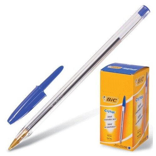 Ручка шариковая BIC "Cristal", синяя, корпус прозрачный, узел 1 мм, линия письма 0,32 мм, 50 шт.