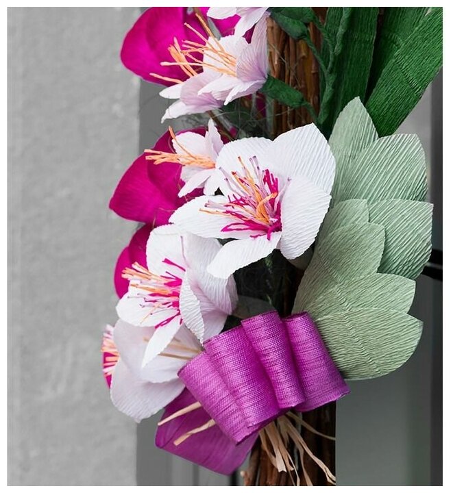 Бумага для упаковок и поделок, гофрированная, розовая, орхидея, однотонная, двусторонняя, рулон 1 шт., 50 см x 2.5 м