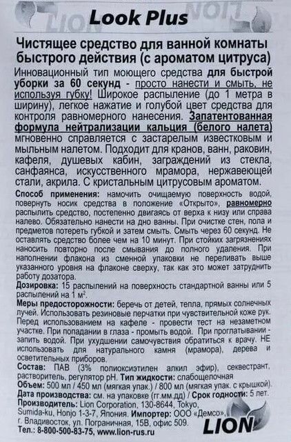 Ниже Вы можете прочитать отзывы на LION Чистящее средство для ванной комнаты "Look Plus" быстрого действия,аромат цитруса 500мл, ознакомится с подробными характеристиками, посмотреть интересные обзоры и фотографии на LION Чистящее средство для ванной комнаты "Look Plus" быстрого действия,аромат цитруса 500мл.