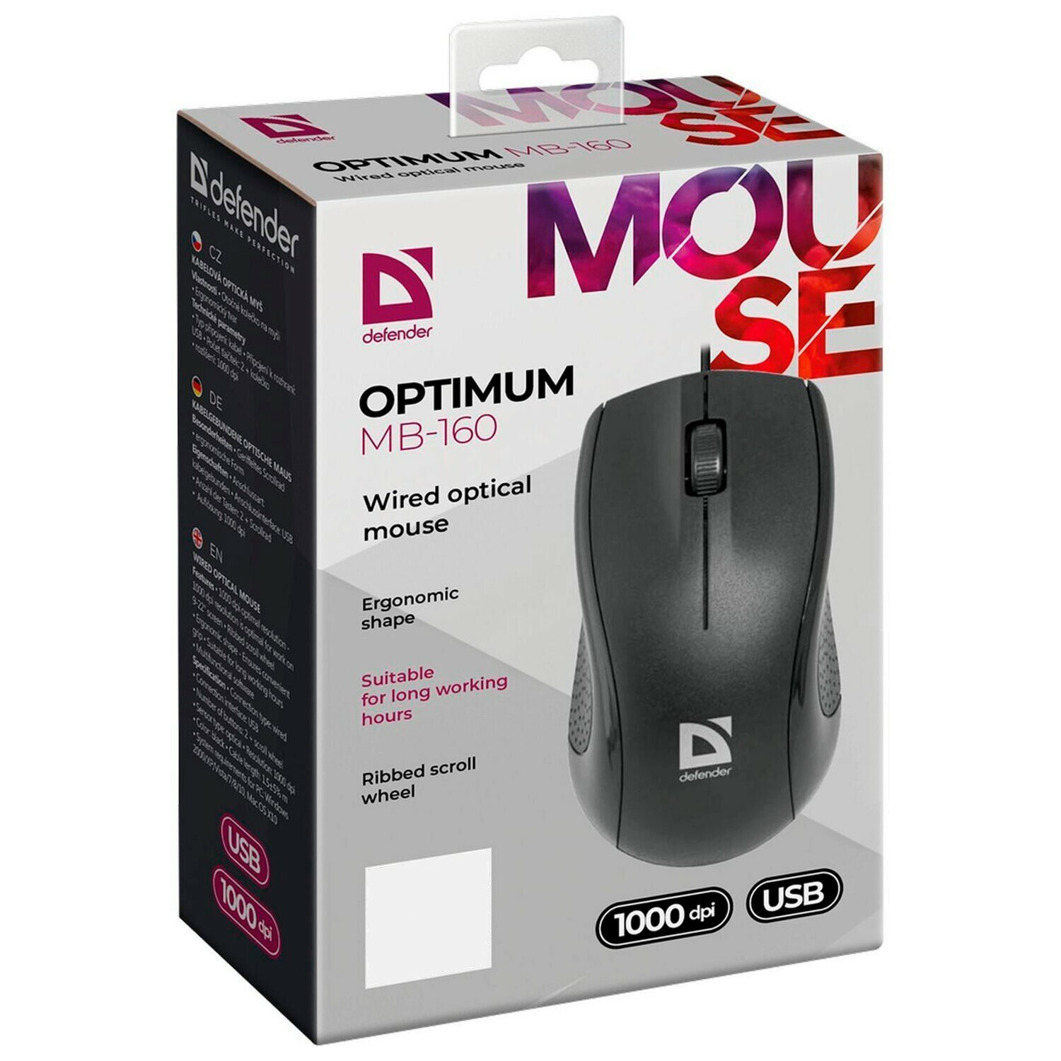 Купить Мышь проводная DEFENDER Optimum MB-160, USB, 2 кнопки + 1 колесо-кнопка, оптическая, черная, 52160, 512027