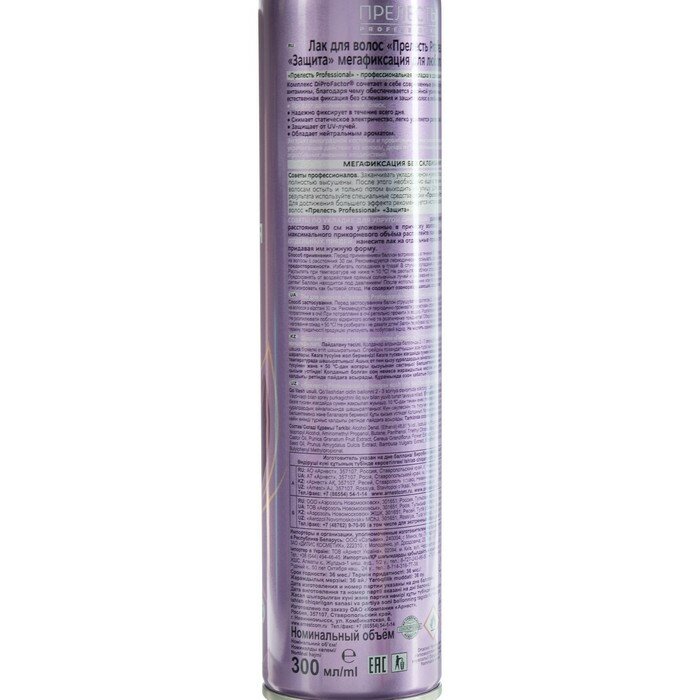 Лак для волос прелесть Professional Защита, мегафиксация, 300 мл