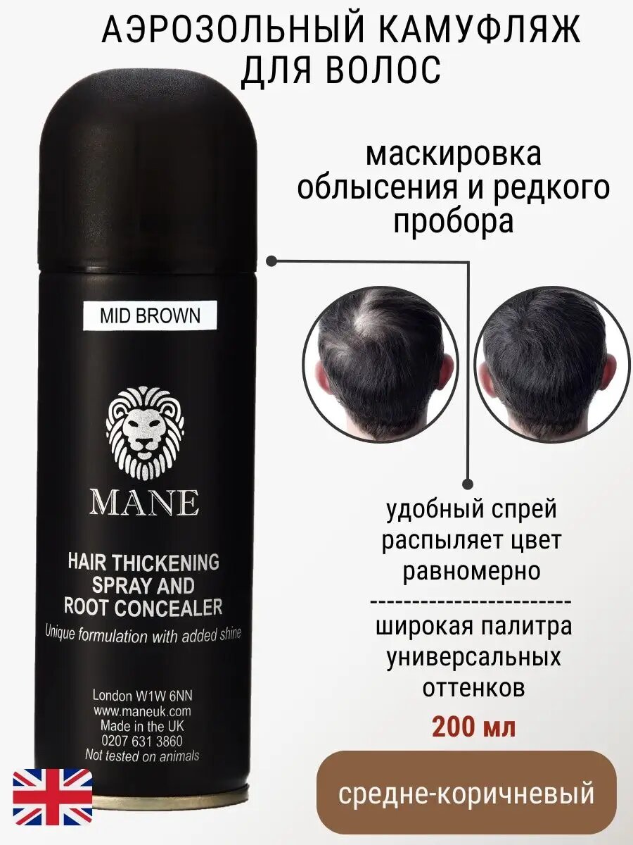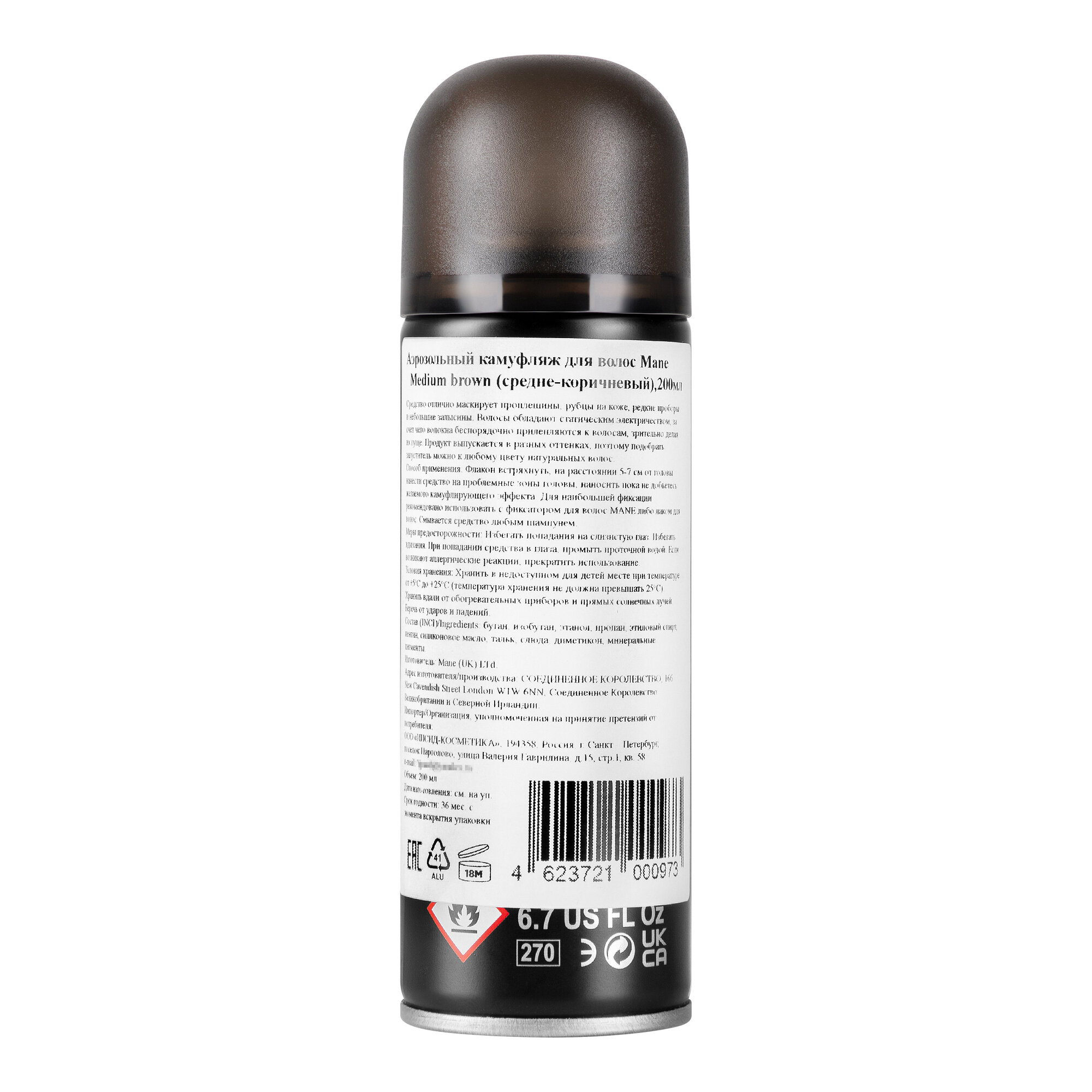Mane Камуфляж для волос аэрозольный Medium Brown средне-коричневый, 200 мл 1 шт