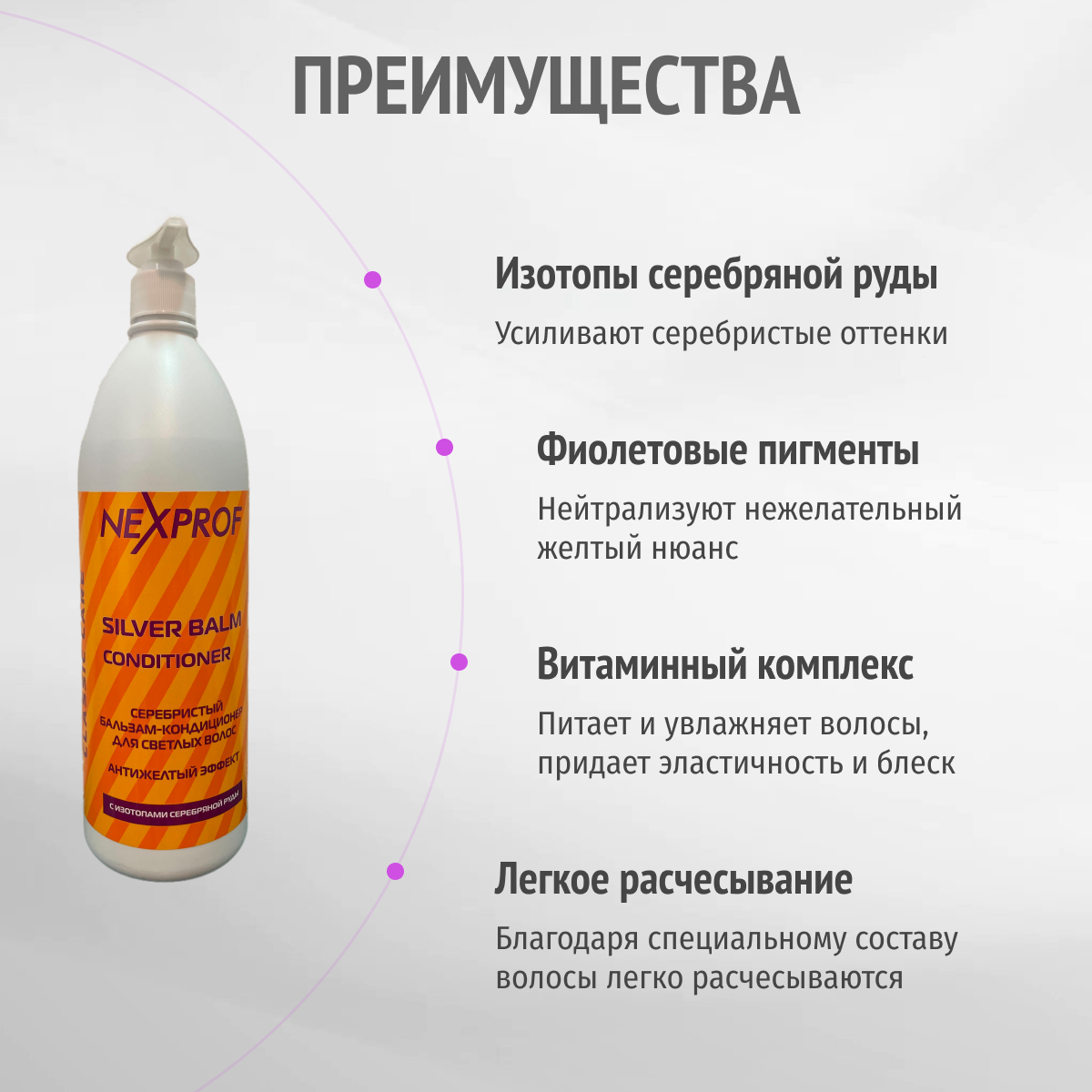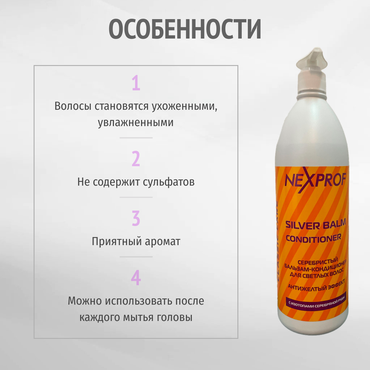 NEXPROF бальзам-кондиционер Classic care серебристый для светлых и осветленных волос с антижелтым эффектом, 1000 мл