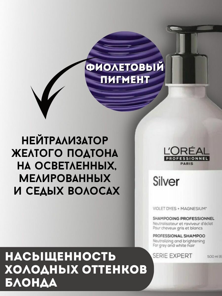 L'Oreal Professionnel шампунь Expert Silver для нейтрализации желтизны осветленных и седых волос, 500 мл