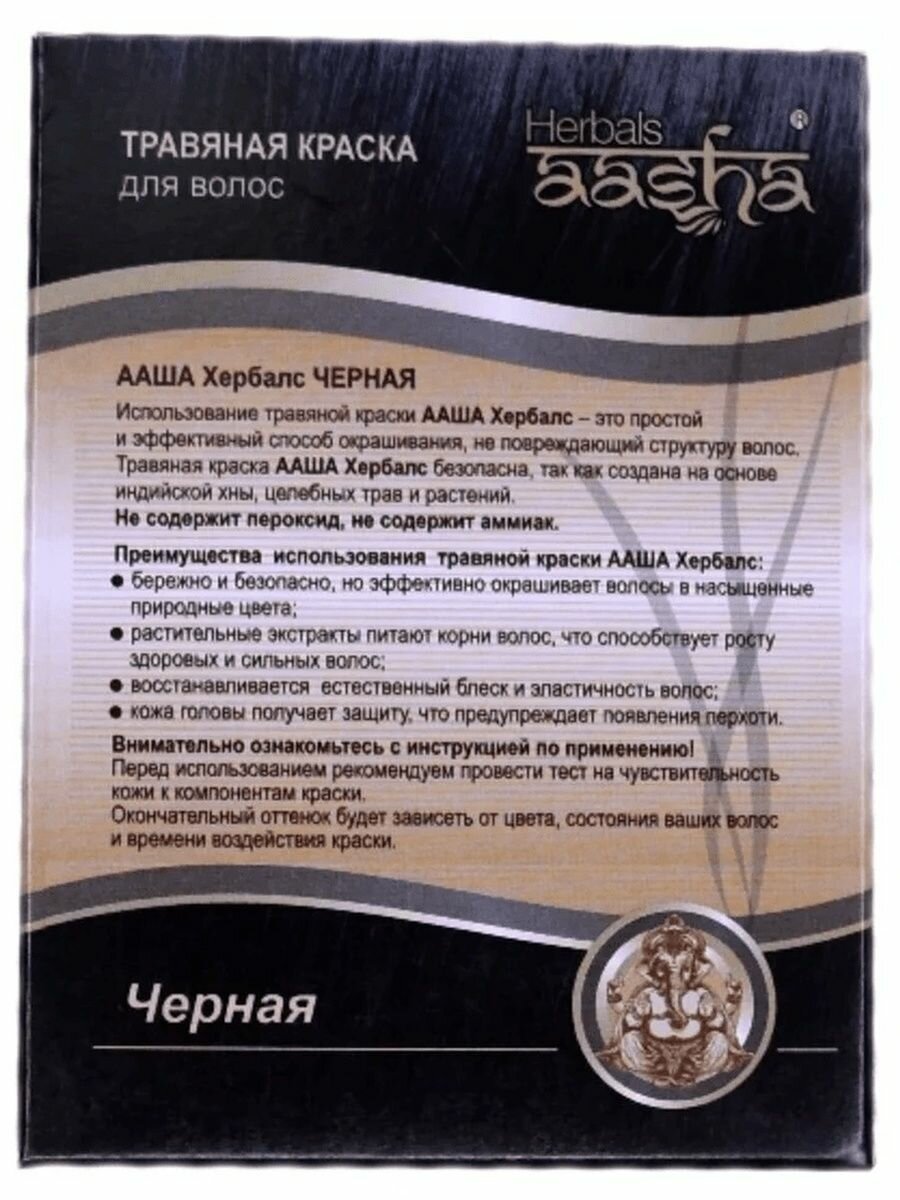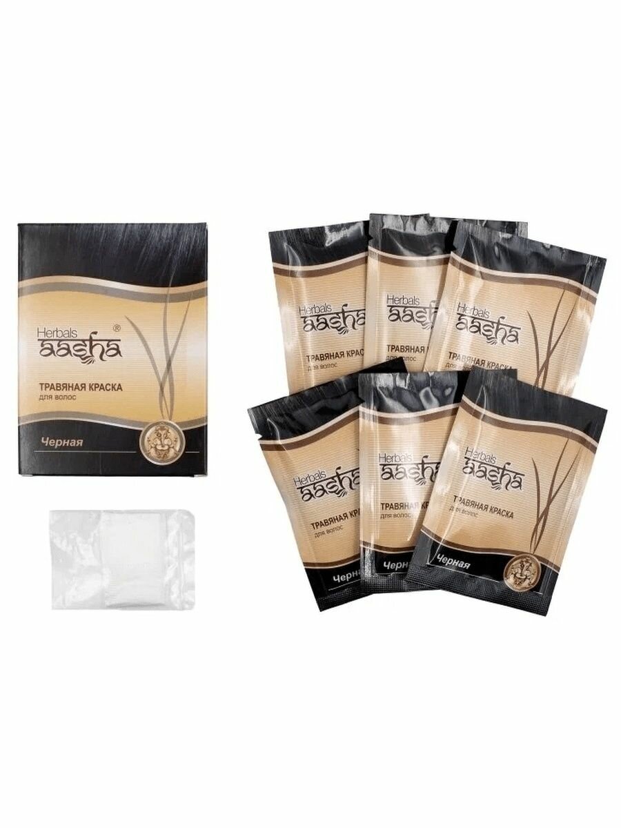 Краска для волос травяная "Чёрная" Ааша (на основе индийской хны) Aasha 6 пак. по 10 гр.