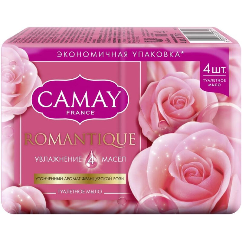 Мыло твердое, Camay, романтик, 4 х 75 г, 2уп