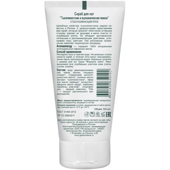 Скраб для ног GREEN MAMA тысячелистник и вулканическая пемза 100 мл интересное: