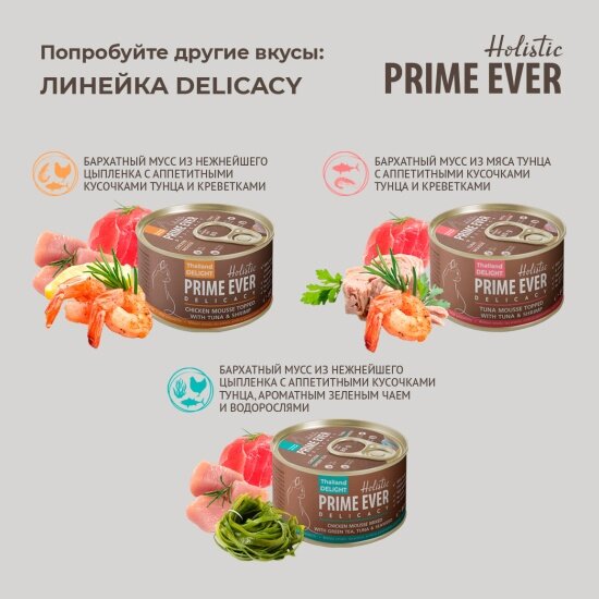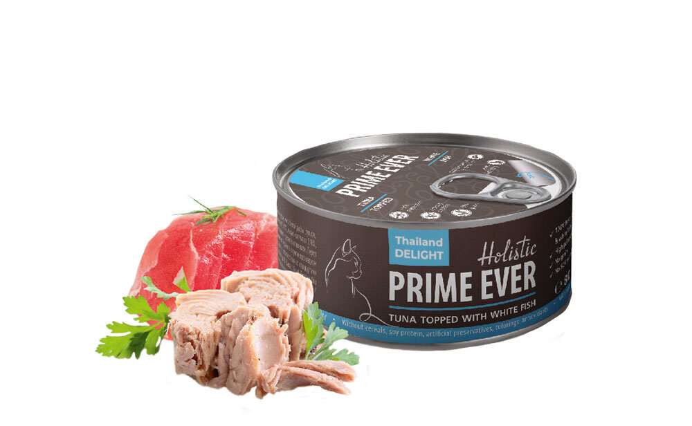 PRIME EVER TUNA TOPPED WITH WHITE FISH холистик для кошек и котят с тунцом и белой рыбой в желе (80 гр х 24 шт)