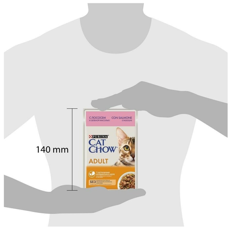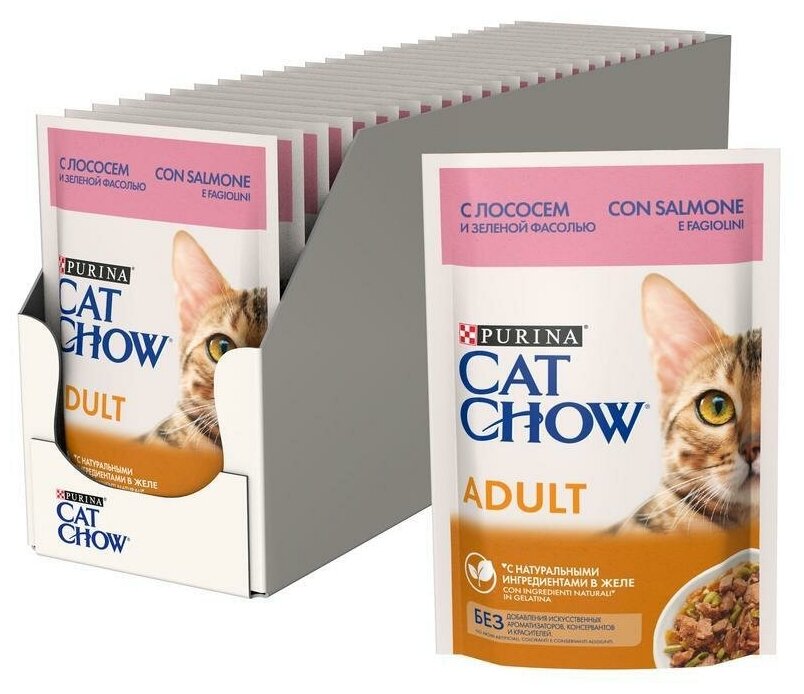 Влажный корм для кошек CAT CHOW с лососем и зелёной фасолью 26 шт. х 85 г (кусочки в желе) интересное: