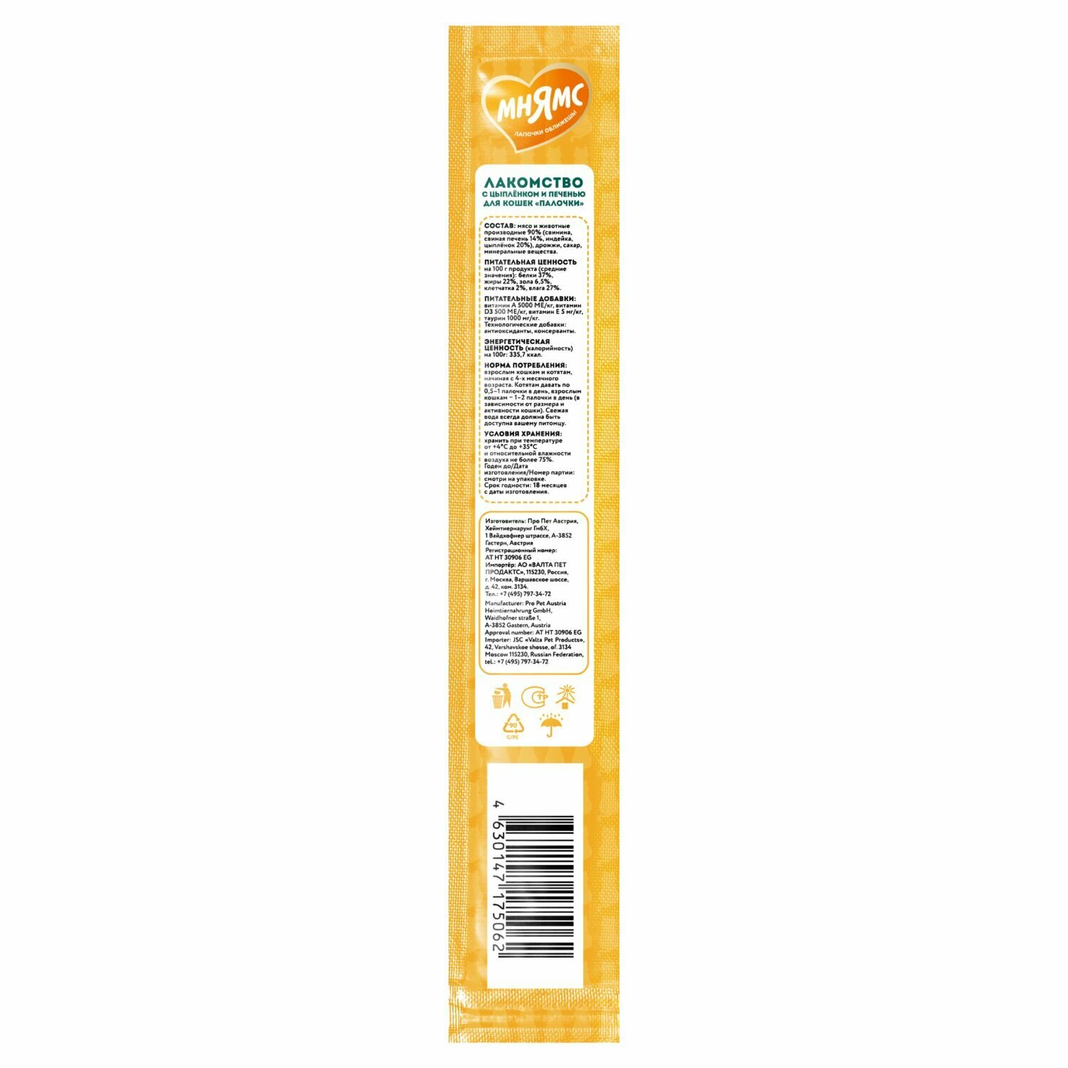 Лакомые палочки Мнямс для кошек, с цыпленком и печенью, 13,5 см, 10 х 5 г