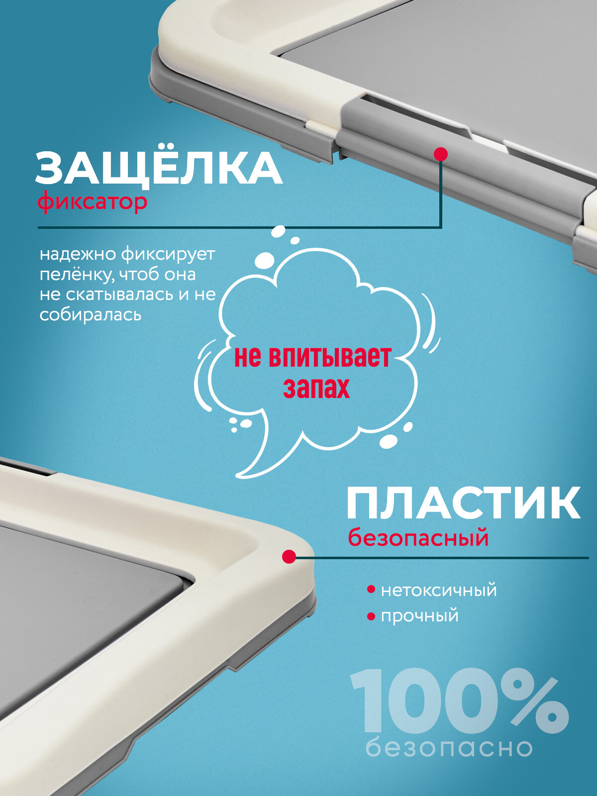 | Плюсы: | Удобная площадка, быстрая замена пелёнки, удобно мыть, резиновые ножки. |