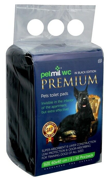 PETMIL Пеленки BLACK Premium впитывающие гелевые, 60х40 см (в наборе 10 шт)