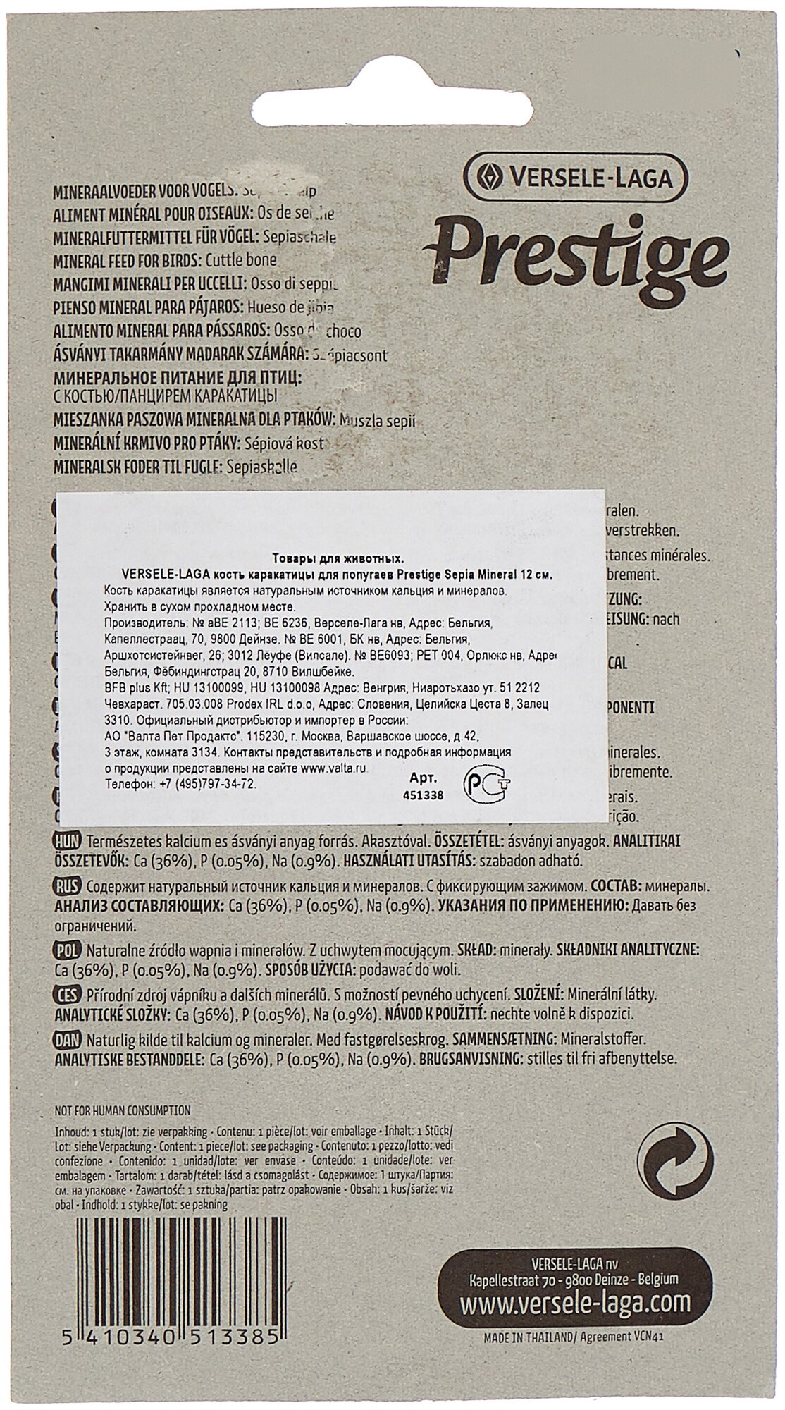 Versele-Laga Prestige кость каракатицы для попугаев Sepia Mineral 12 см интересное: