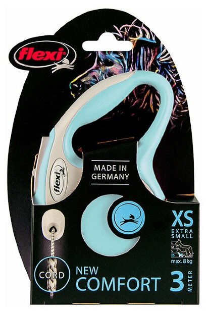 FLEXI NEW COMFORT CORD тросовый поводок рулетка для животных 8 м размер M голубой (1 шт)