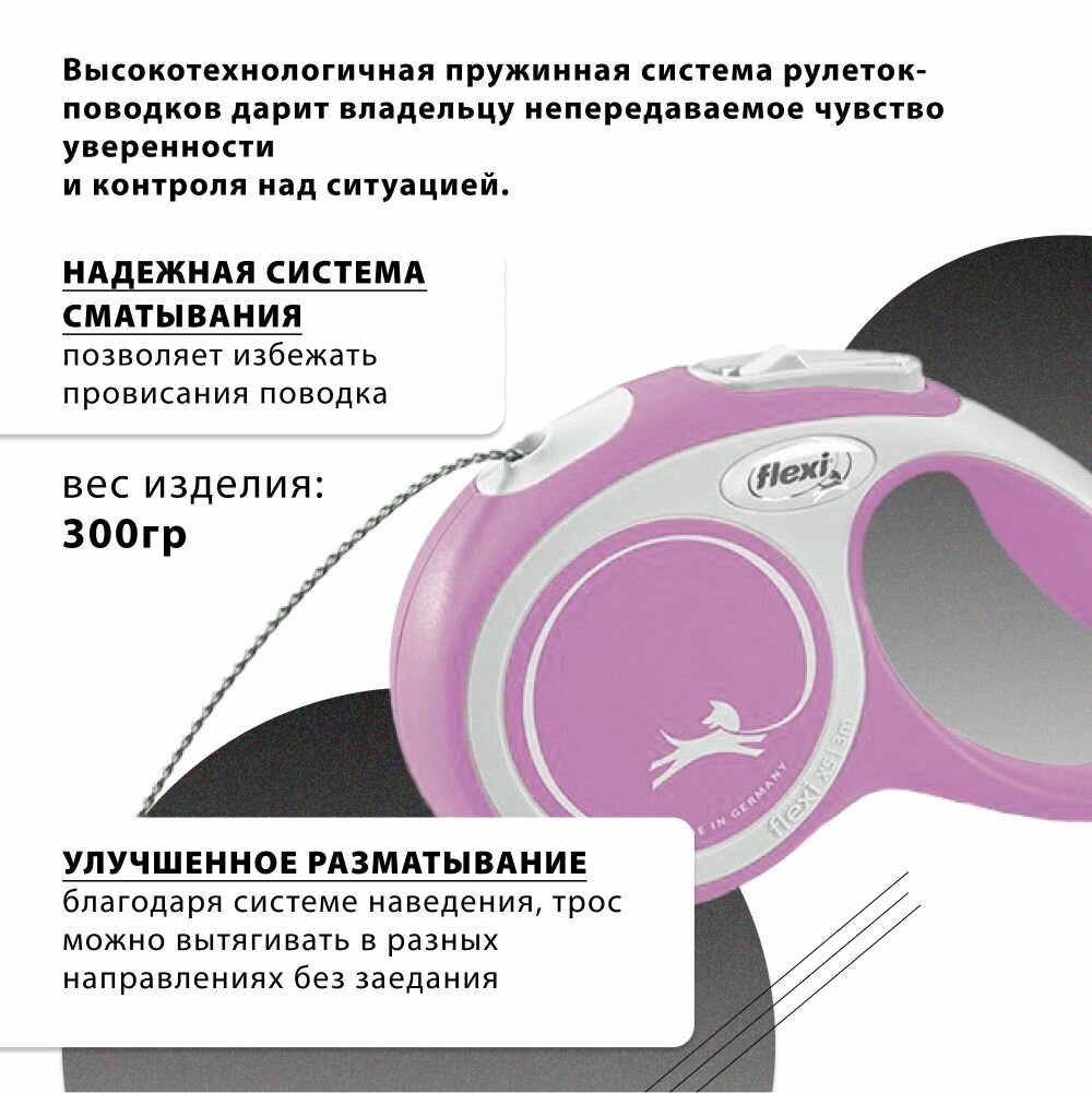 Рулетка-трос для собак Flexi New Comfort М, до 20 кг, 5 м, черно-розовая