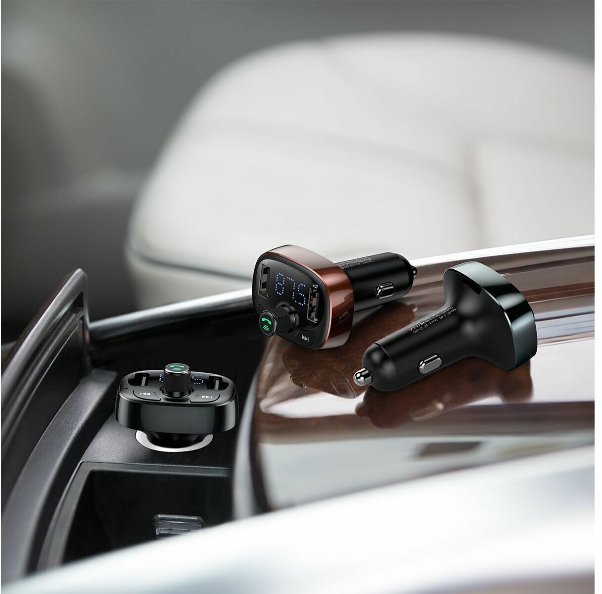 Автомобильное зарядное устройство с FM-трансмиттером 2xUSB Baseus T typed Bluetooth MP3 - Dark Coffee (CCALL-TM12)