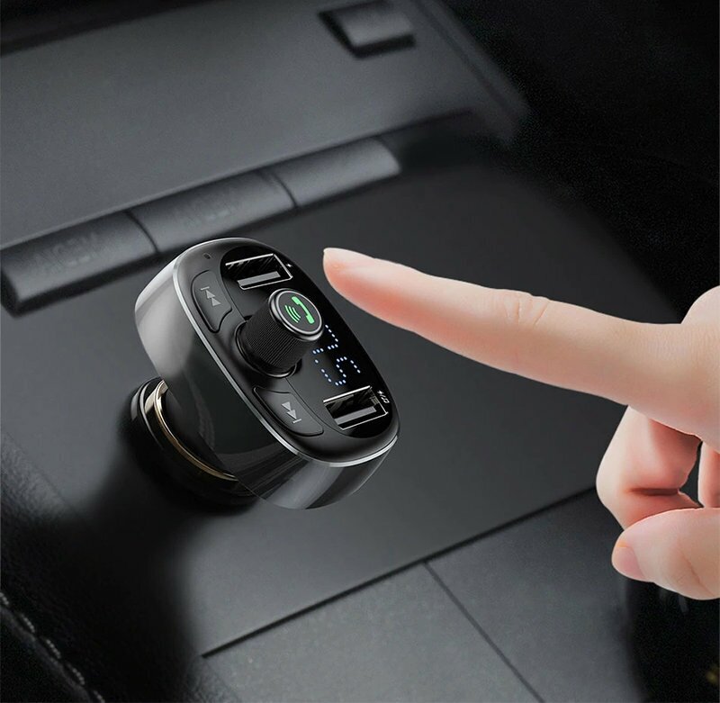 Автомобильное зарядное устройство с FM-трансмиттером 2xUSB Baseus T typed Bluetooth MP3 - Черное (CCALL-TM01)