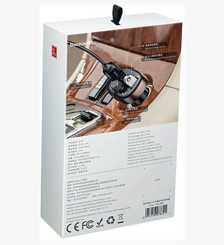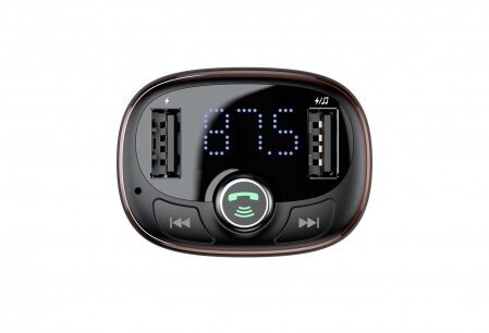 FM - Трансмиттер BASEUS T typed S-09, 2*USB, 3.4A, темный кофе, дисплей + Bluetooth, FM, SD/TF