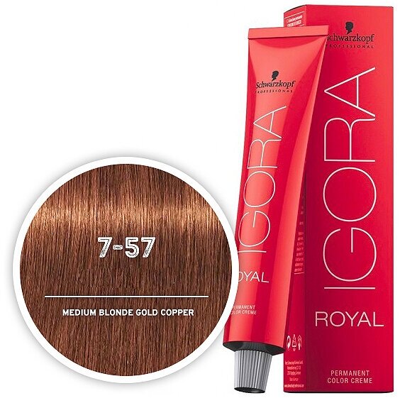 Ниже Вы можете прочитать отзывы на Schwarzkopf Igora Royal стойкая крем-краска для волос 7-57 Средний русый золотистый медный 60 мл, ознакомится с подробными характеристиками, посмотреть интересные обзоры и фотографии на Schwarzkopf Igora Royal стойкая крем-краска для волос 7-57 Средний русый золотистый медный 60 мл.