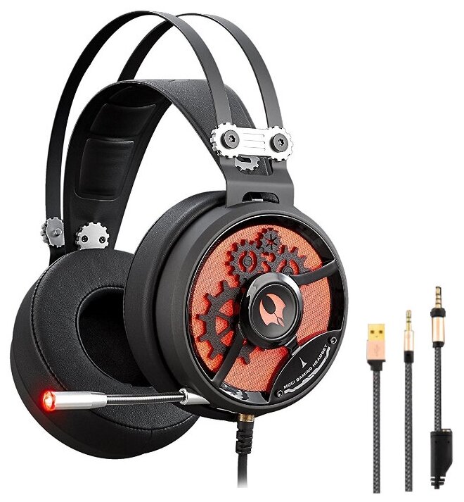 | Плюсы: | Первое, что понравилось, это удобство. Полностью охватывают уши. Амбушюры очень мягкие, при длительном использовании уши не болят. Если вы даже чебурашка, уши "утонут")) Звук добротный. Претензий вообще нет. Басы не сильные, но и не слабые, естественные, приятные. В комплекте идут два переходника, разветвитель для микрофона и самих наушников. И ещё один для для подсветки (usb). Были в наличии двух цветов, чёрный-бронза (оранжевый) и чёрный-красный. По микрофону сказать ничего не могу. Есть колёсико громкости на левой чаше. Очень удобно. |