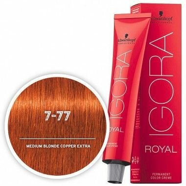 Schwarzkopf Professional Профессиональная крем краска для волос IGORA ROYAL Средний русый медный экстра 7-77, 60 мл / Шварцкопф Профессионал Игора Роял