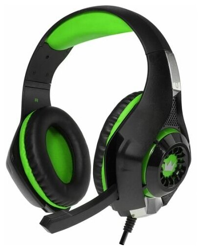 Наушники Crown CMGH-101T игровые, с микрофоном, чёрно-зеленый