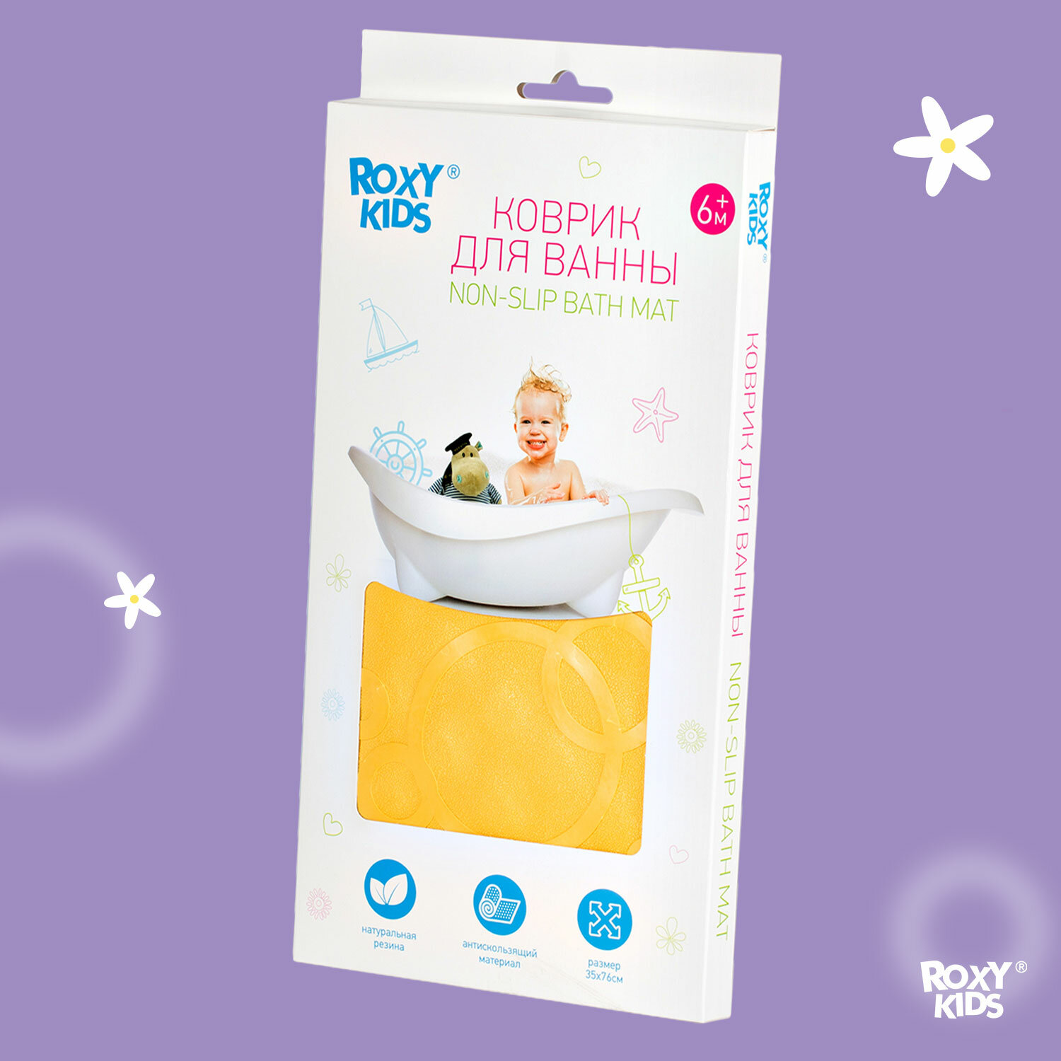 Коврик резиновый антискользящий для ванны ROXY-KIDS 76*35см желтый BM-M188-1Y 410636