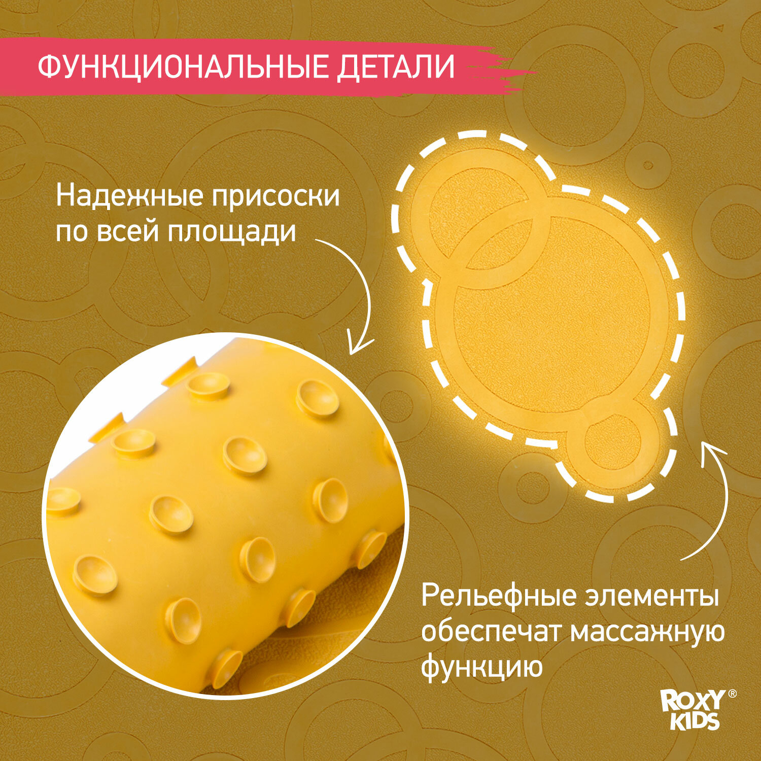 Коврик резиновый антискользящий для ванны Roxy-Kids, желтый