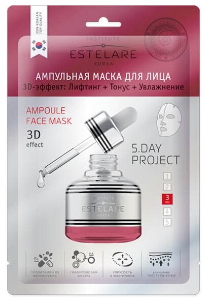 Ампульная маска для лица Estelare 3D-эффект: Лифтинг, Тонус, Увлажнение, 27 г (8809270626918)