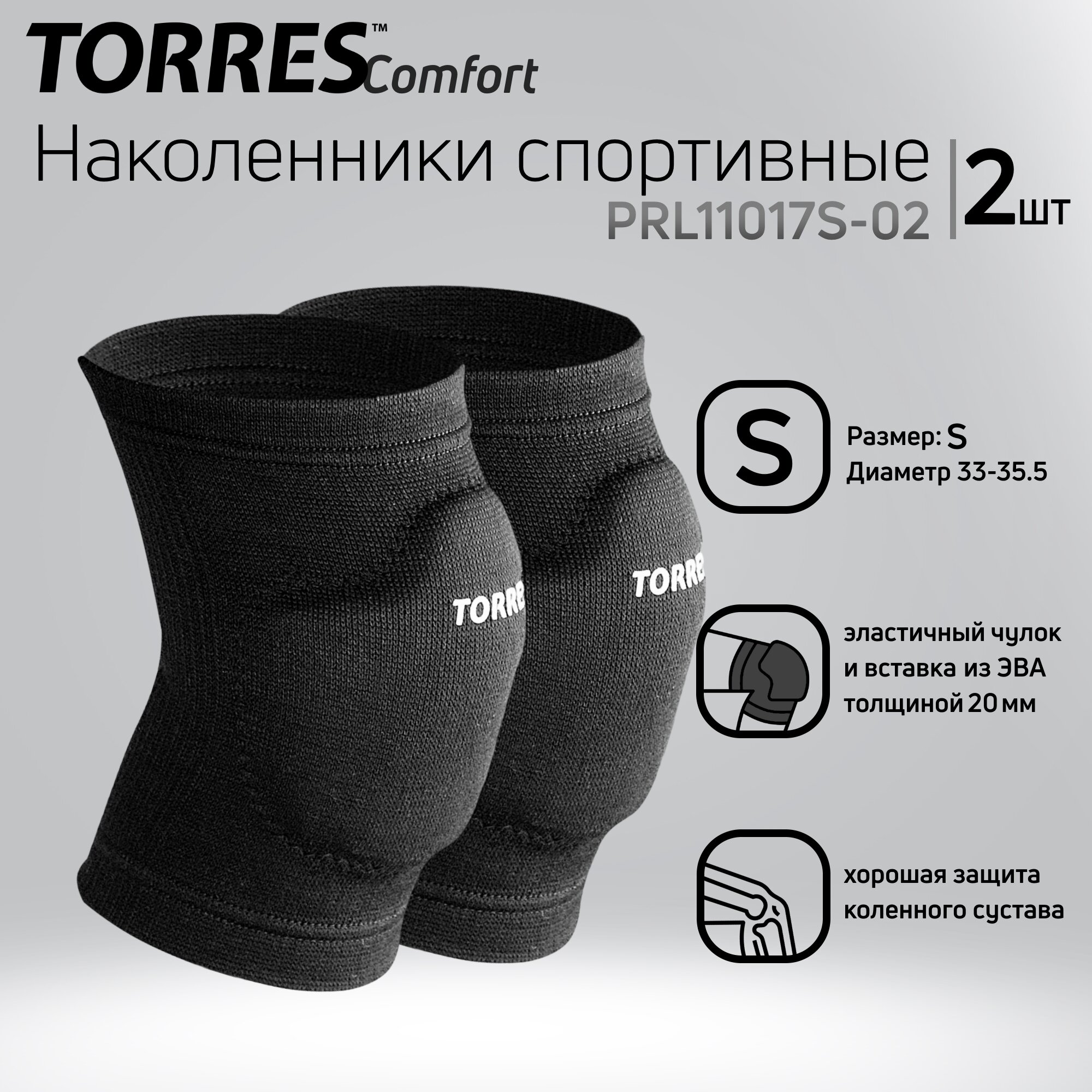 Наколенники спортивные Torres Comfort, черный, размер S, PRL11017S-02, нейлон, ЭВА