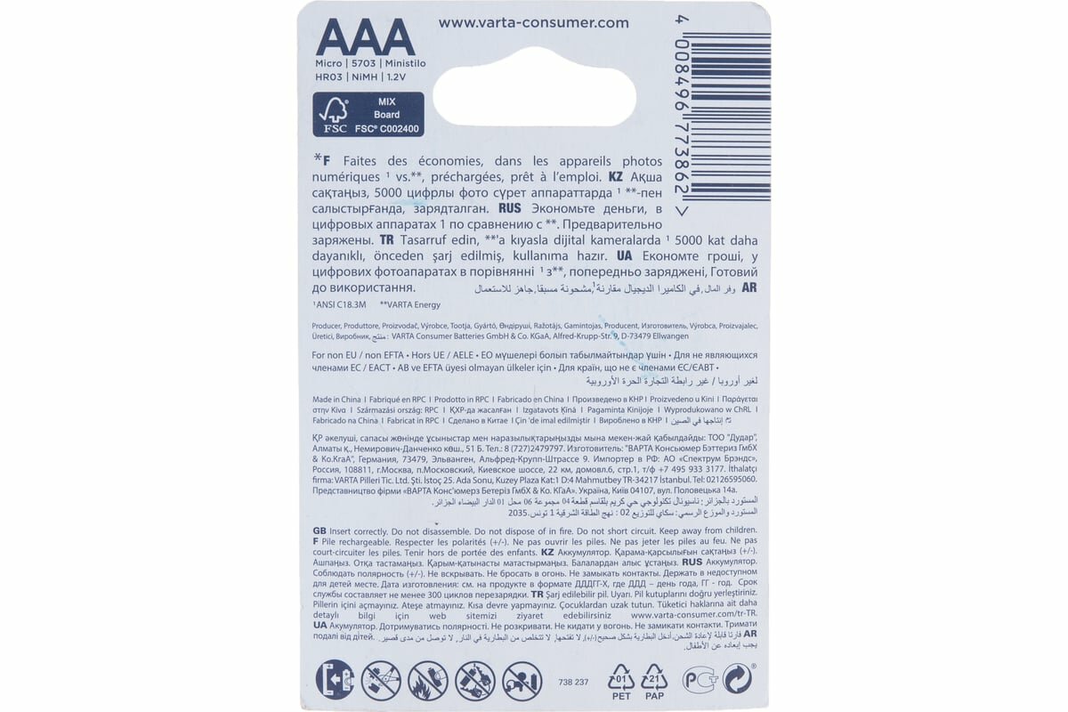 Ниже Вы можете прочитать отзывы на Аккумулятор ААА Varta HR03-4BL 1000мА/ч Ni-Mh Accu Ready2Use в блистере 4шт., ознакомится с подробными характеристиками, посмотреть интересные обзоры и фотографии на Аккумулятор ААА Varta HR03-4BL 1000мА/ч Ni-Mh Accu Ready2Use в блистере 4шт..
