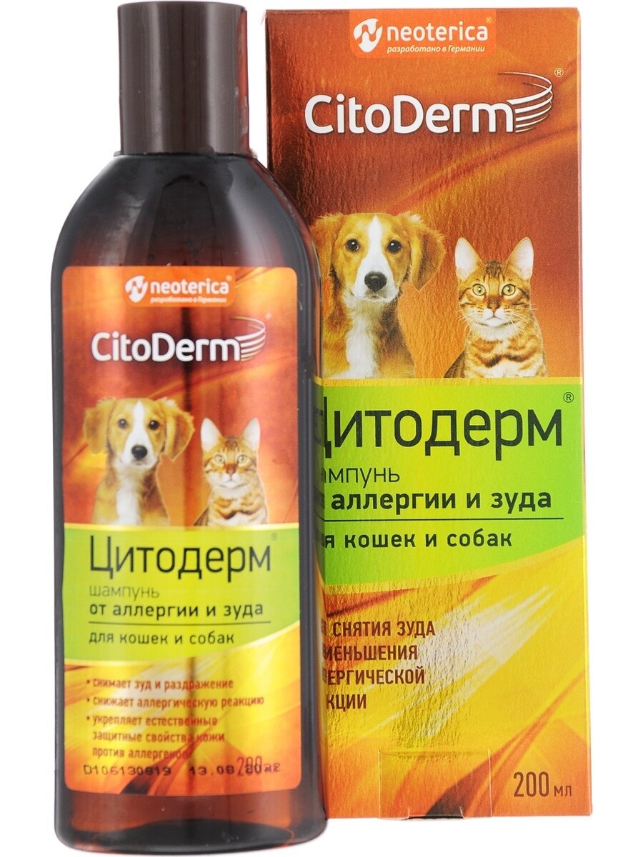Шампунь цитодерм от аллергии и зуда для кошек и собак 200 мл