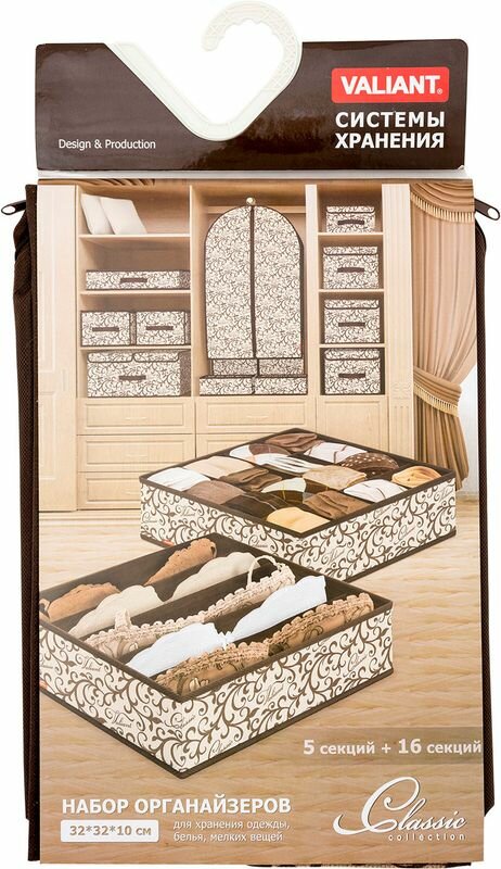 Органайзер для белья Valiant Classic, 32 x 32 x 10 см, набор 2 шт