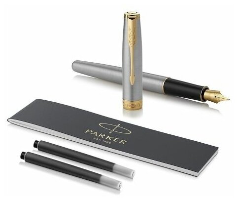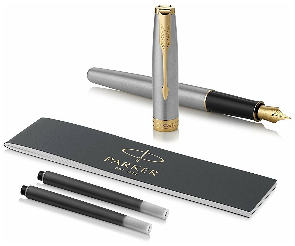 Ручка перьевая PARKER Sonnet Core Stainless Steel GT, корпус серебристый, позолоченные детали, черная, 1931504