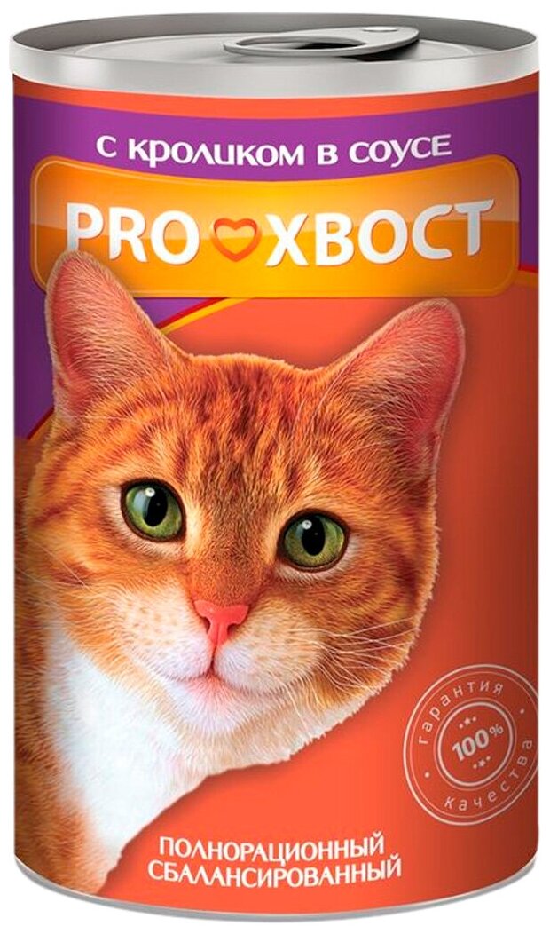 Корм консервированный Proхвост для взрослых кошек с кроликом в соусе, 415гр. Корм для кошек влажный