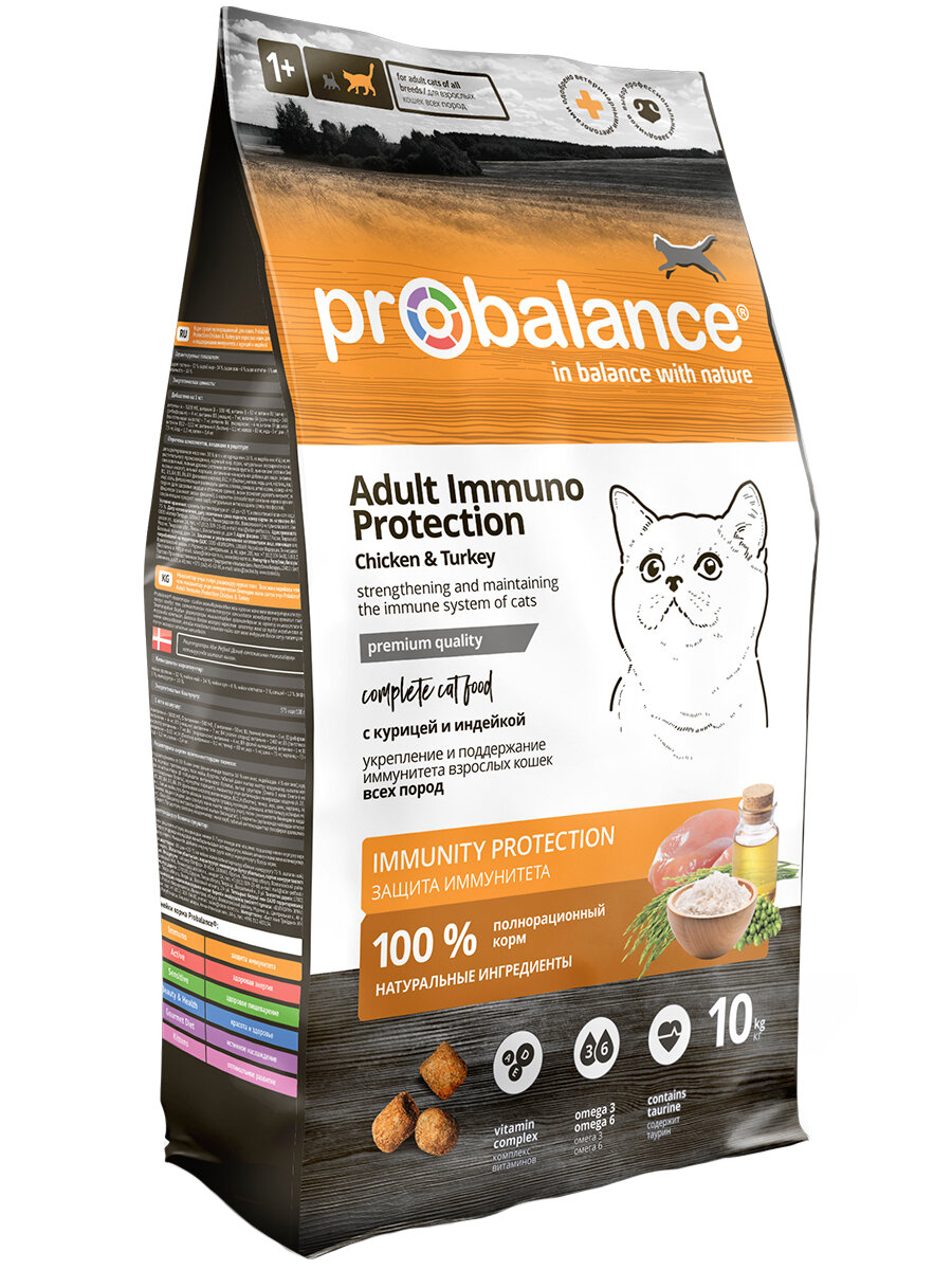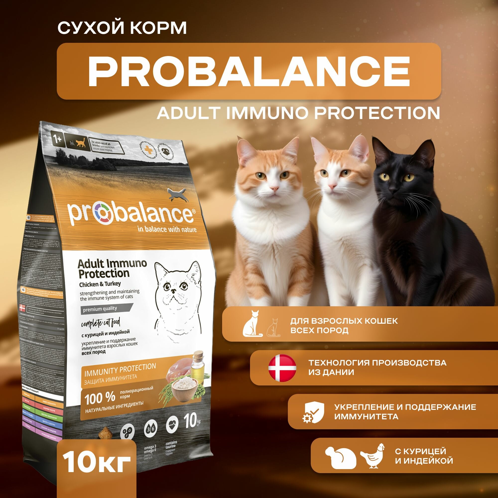 Корм для кошек ProBalance Adult Immuno Protectionсухой для кошек с курицей и индейкой, 10 кг