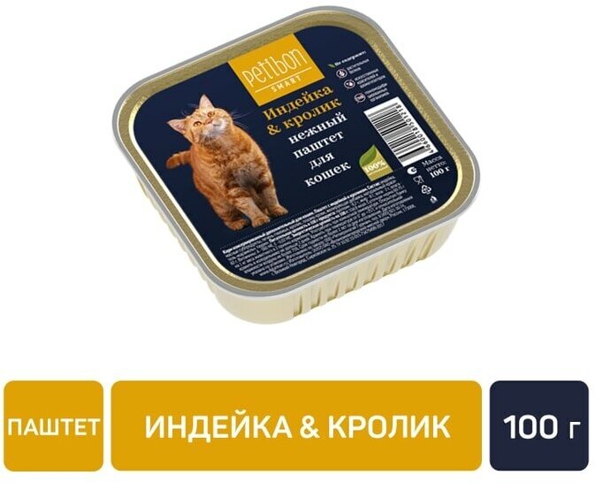 Корм консервированный для кошек Petibon "Smart Паштет", с индейкой и кроликом, упаковка 24 шт х 100 г