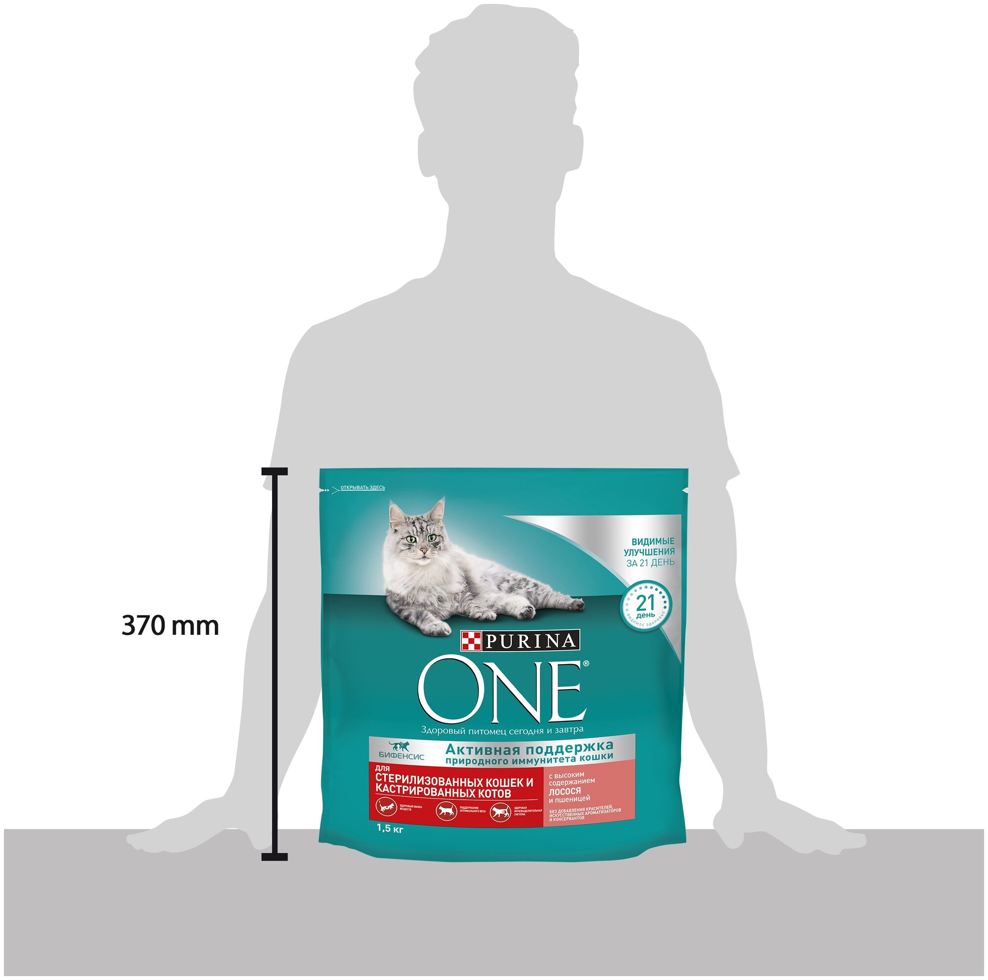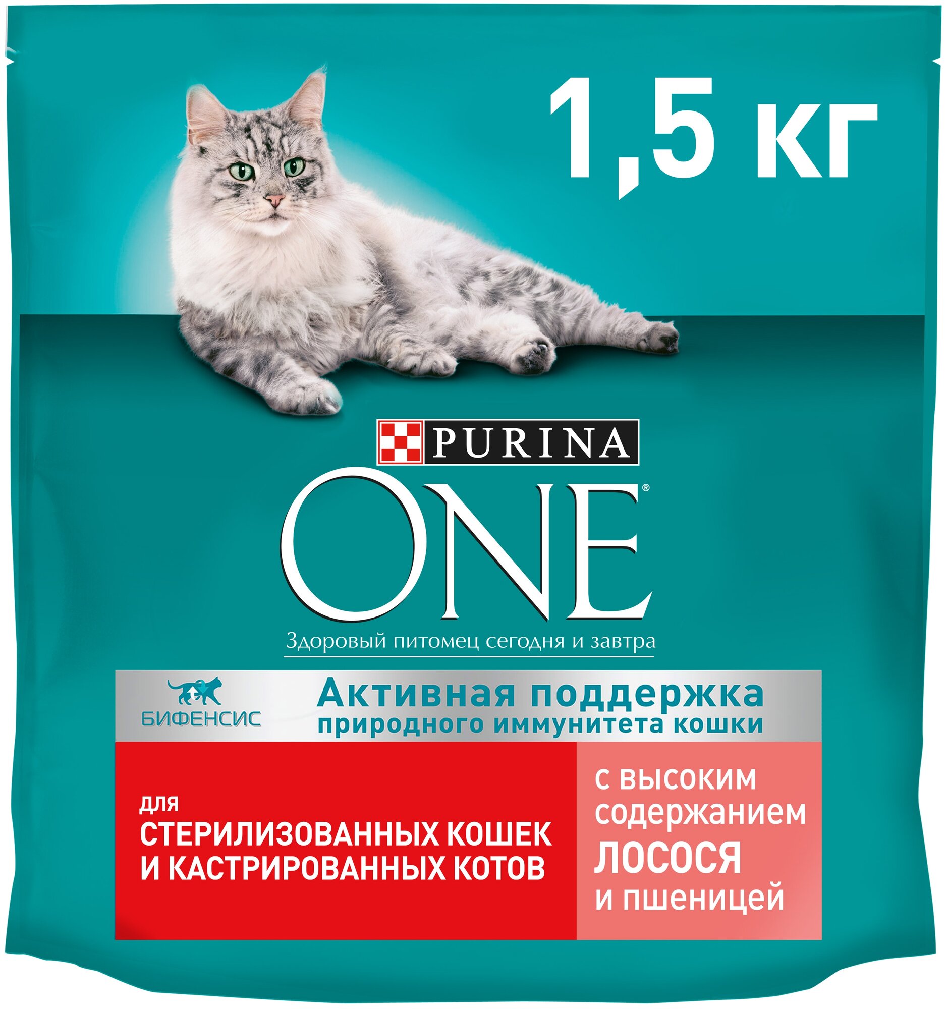 Сухой корм Purina ONE полнорационный для стерилизованных кошек и кастрированных котов, с высоким содержанием лосося, 1,5 кг