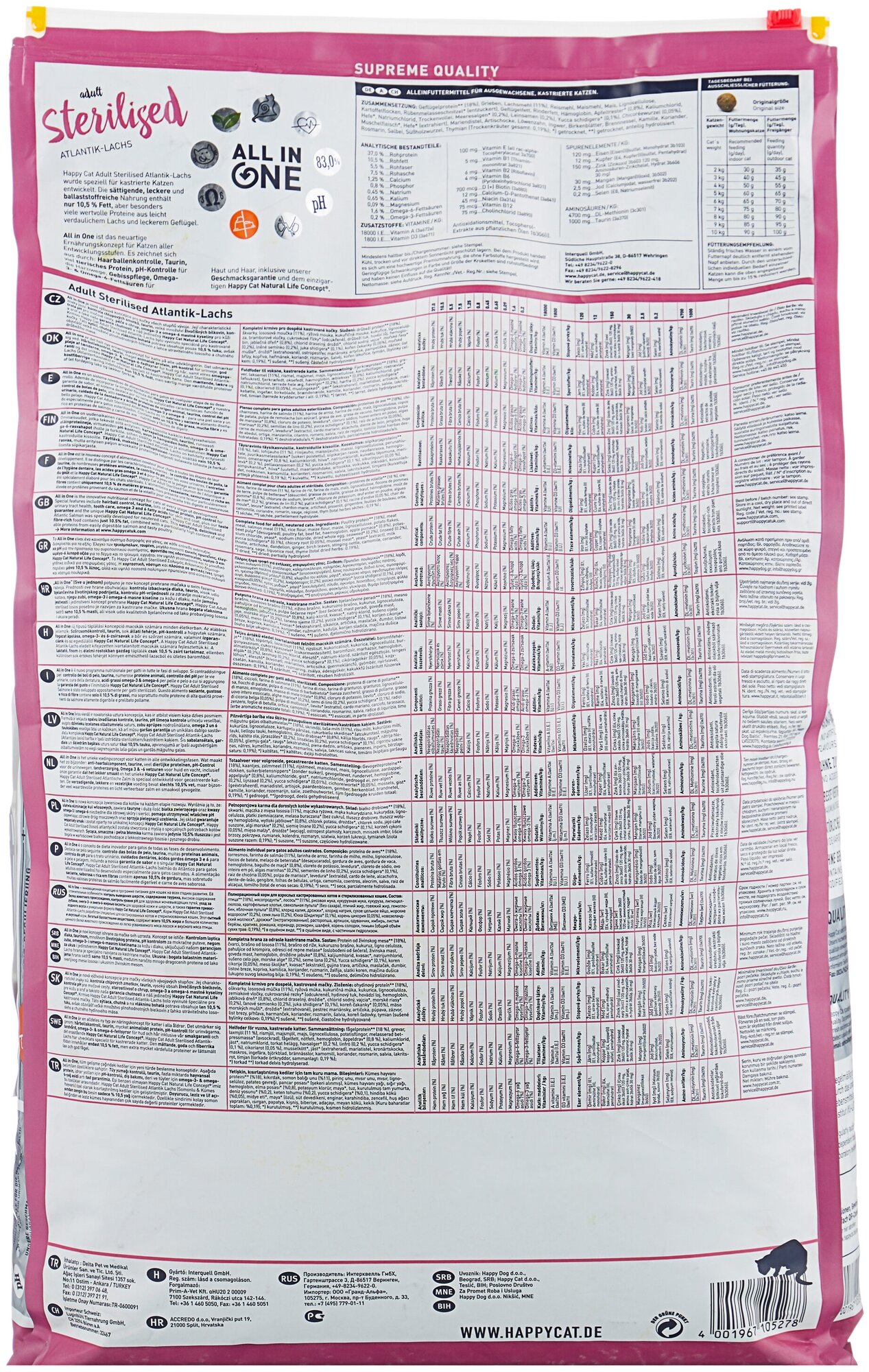 Купить HAPPY CAT 10кг Корм сух Эдалт Стерилизат Атлантический лосось ФитВелл