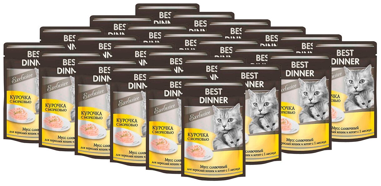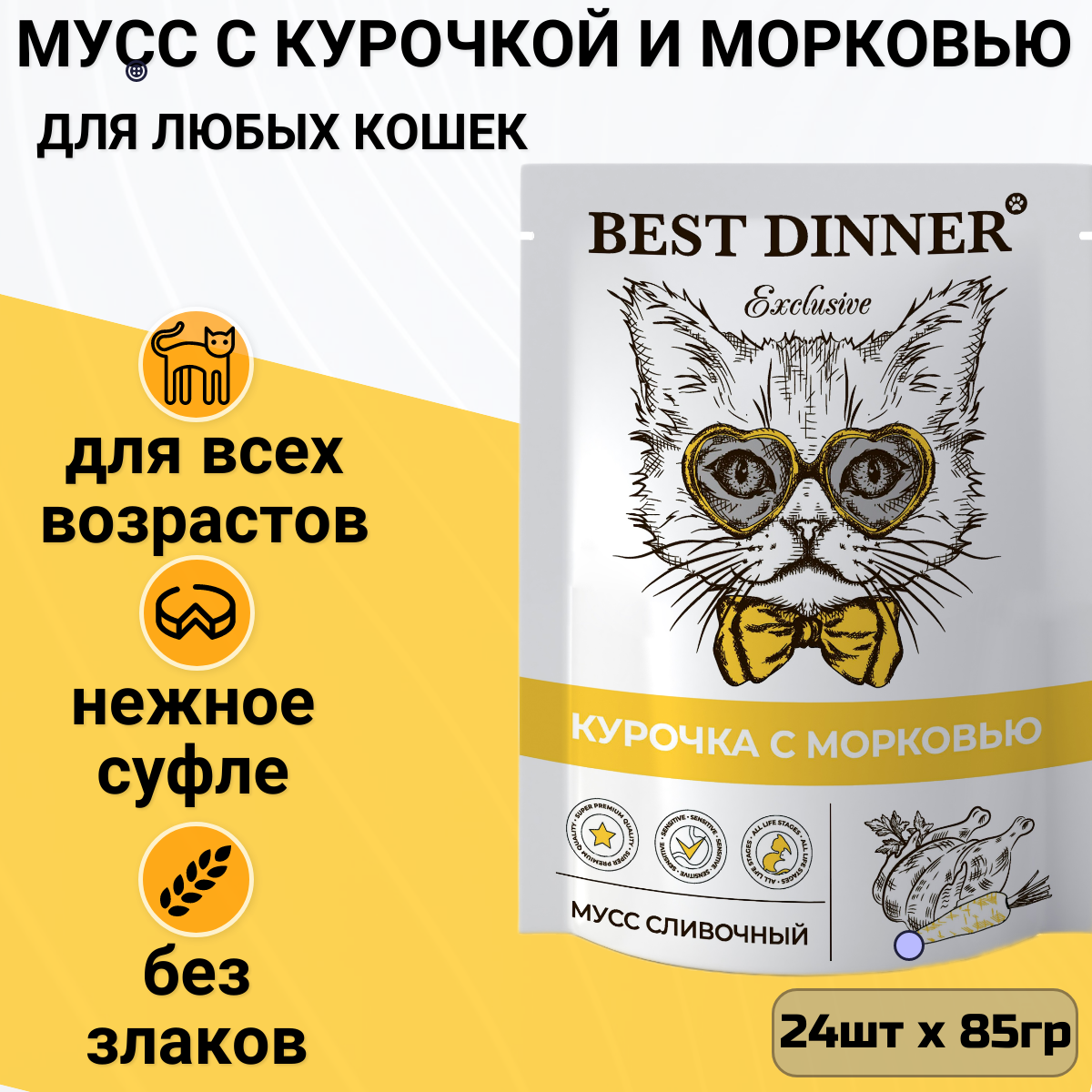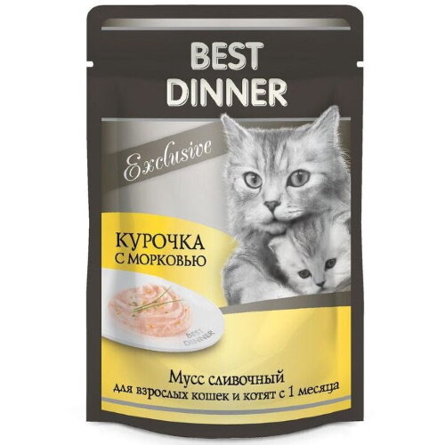 Best Dinner Exclusive консервы для кошек и котят с 1 месяца мусс сливочный с курочкой и морковью пауч 24х85г